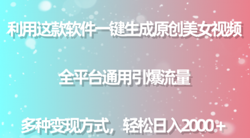 今天给大家带来最新项目“利用这款软件一键生成原创美女视频,全平台通用引爆流量,多种变现方式,轻松日入2000+”