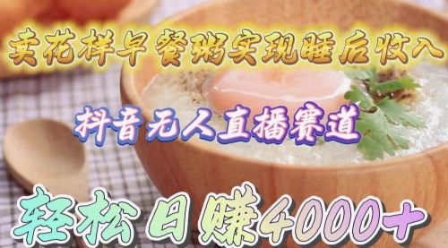 今天给大家带来一个《卖花样早餐粥实现睡后收入!抖音无人直播新赛道,轻松日赚4000+》项目。
