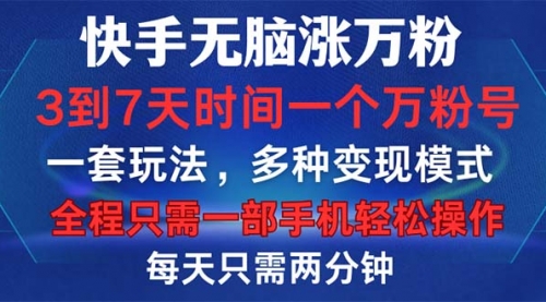 相信大家呢肯定有不少人自己做过账号,累死累活的不说,好不容易把视频录出来,还要花费大量时间剪辑,一整个流程下来,直接浪费了半天时间,而且粉丝根本不带涨的,那么你用了我们的这个方法后,基本上三到七天就能涨到万粉,快一点就三天多时间,不需要你去自己拍摄,也不需要你浪费时间去剪辑,直接无脑循环复制就行,涨万粉,变现简简单单, 目前呢快手账号在市面上也是特别的抢手,而且很多人都在收购,价格都很不错,包括我这边也是高价回收,那么我们的这个起号方法也是适用于各大平台,不管是抖音,快手或者是小红书,微信视频号什么的,只要你想去涨粉都可以用这个方法去做,操作特别简单,两分钟就可以剪一条作品,直接无脑复制就行,有的人一个月就能起十几个号,只要你不傻都可以操作,做的好还能月入好几个,毕竟一个万粉号的变现模式也是比较多,而卖号只是其中的一种,更何况快手上很多的变现任务都需要一万粉才可以开通,既然大家都知道了玩法,赶快去多起几个万粉号,不管是现在还是将来,一个万粉号的价值是尤为重要的