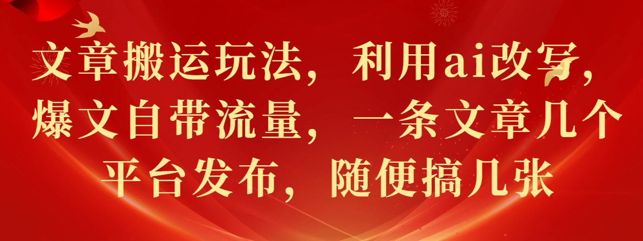 文章搬运游戏玩法,运用ai改变,热文自带光环,一条文章内容好多个网站发布,随意搞多张