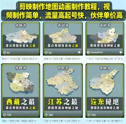 剪映制作地图动画制作教程,视频制作简单,流量高起号快,伙伴单价高