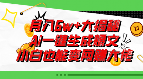 会用AI就是掌握了财富密码,用上最新’爆文插件’!无需手动操作,一键生成爆款文章,轻松省去繁琐步骤。即使不懂技术,也能轻松上手,每月轻松赚6W+块!现在使用者寥寥,赶紧用起来,掌握先机!