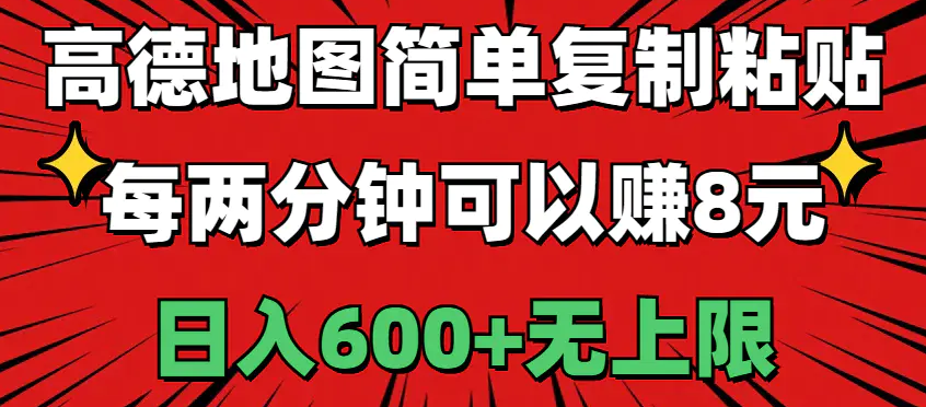 今天给大家带来的项目是《高德地图简单复制粘贴,每两分钟可以赚8元,日入600+无上限》