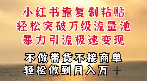 今天给大家带来的项目是【深层揭秘小红书,靠复制粘贴,一周突破万级流量池,无脑搬运,暴力引流,轻松月入过万】
