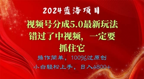 今天给大家带来的项目是《视频号创作者分成5.0玩法,100%过原创,条条爆款,单日1000+》