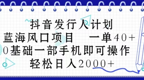 大家好,今天给大家带来的项目是:抖音发行人计划,蓝海风口项目,一单40,0基础一部手机即可操作,轻松日入2000+
