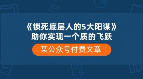 底层人想要翻身,比登天都难,原因就是,他们被下面这5大阳谋深深束缚住了,丝毫不得动弹