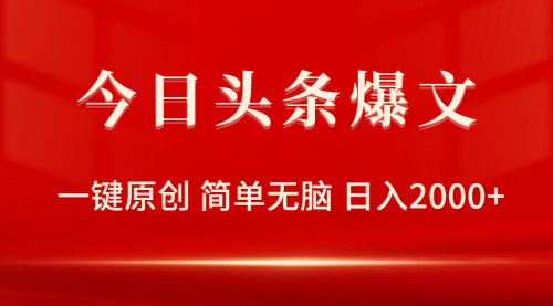 今天给大家带来的是最新今日头条爆文玩法,一键原创,简单易上手,小白可做,日入2000+的项目,跟上早点吃肉!